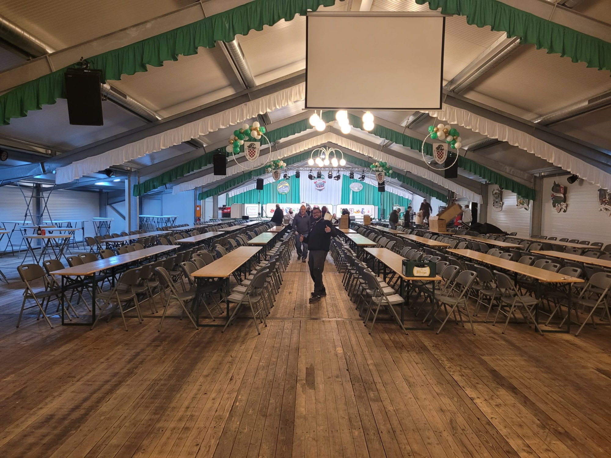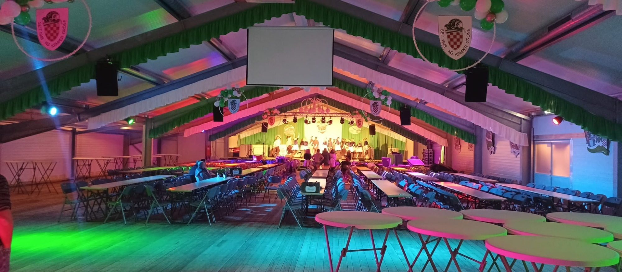 In Vorbereitung auf die Stadtprinzensession wurde schnell klar, dass die alljährlichen Kosten für die Leihe des traditionellen Karnevalszeltes bald für den Verein nicht mehr finanzierbar sein würden. Resigniert den Kopf in den Sand stecken ist da nicht Sache der Gröne. Eine zunächst nur grobe Idee - wir bauen unser eigenes Zelt/Halle - wurde schnell zu einem konkreten Projekt.