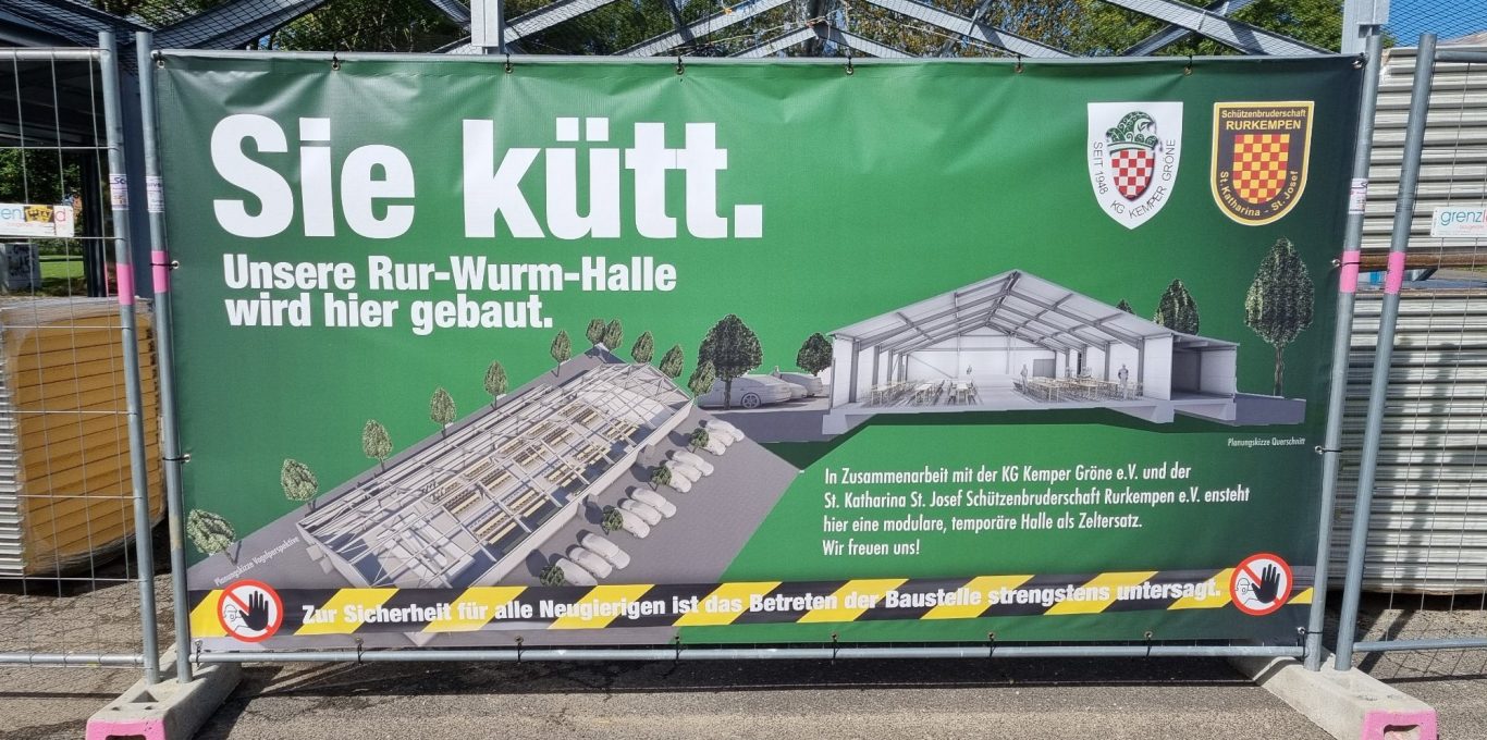 Als Gemeinschaftsprojekt der Kemper Gröne und der St. Katharina St. Josef Schützenbruderschaft entstand in nicht einmal sechs Monaten unsere Rur-Wurm-Halle. Eine Halle, die ohne unsere zahlreichen Sponsoren - denen wir hier ausdrücklich danken - nicht hätte realisiert werden können.